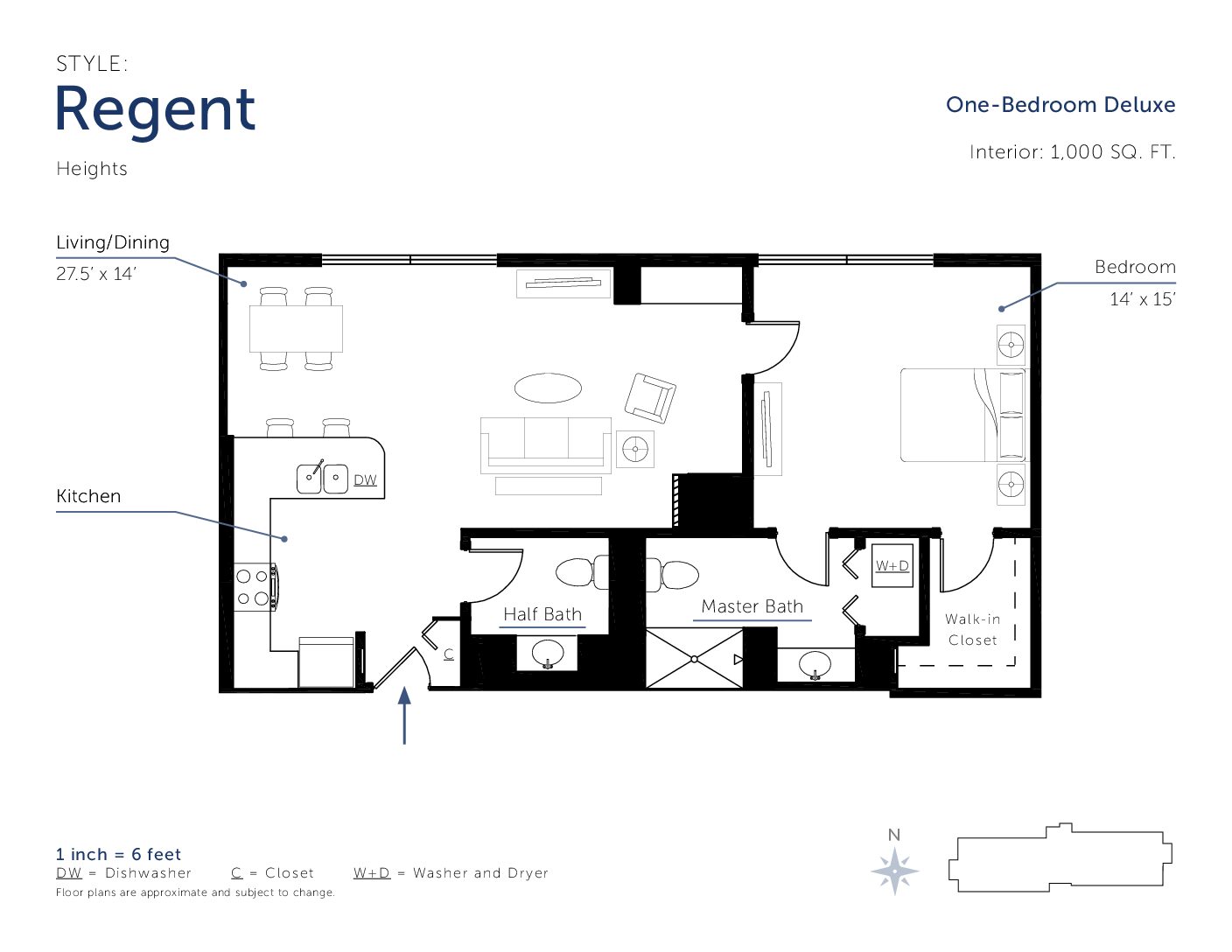1 Bedroom / 1.5 Bath